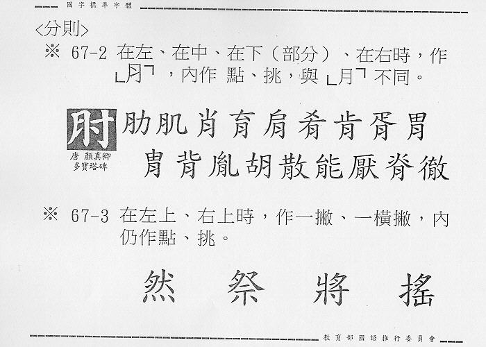 As you can see there is a rather important difference between the two. The 肉 semantic component has been transformed into 月 in most cases.