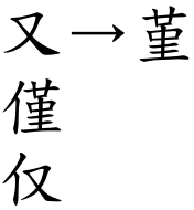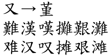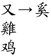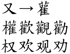 We have seen some inconsistencies in the simplification process in previous posts. Today we are going to look at characters whose parts were simplified to 又. 又(you4) is a character that already exists in the traditional script. In addition to this, 又 is already used as a character component, e.g., 友.