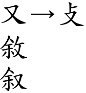 攴 (often looks like 攵 when on the right) was simplified to 又.